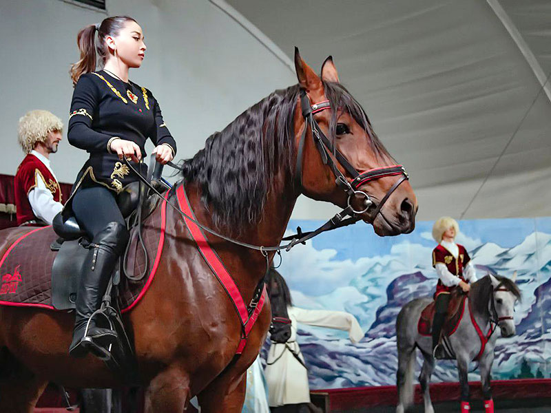 Представления в конном театре – это отдельный вид искусства, объединяющий в себе верховую езду и осетинскую джигитовку, музыкальное сопровождение и живой вокал, актерское мастерство. Практически все выступления аншлаговые. Самыми преданными зрителями «Нартов» являются семьи участников специальной военной операции. Вдова погибшего героя Карина Мурадова старается не пропускать ни одного представления в театре.