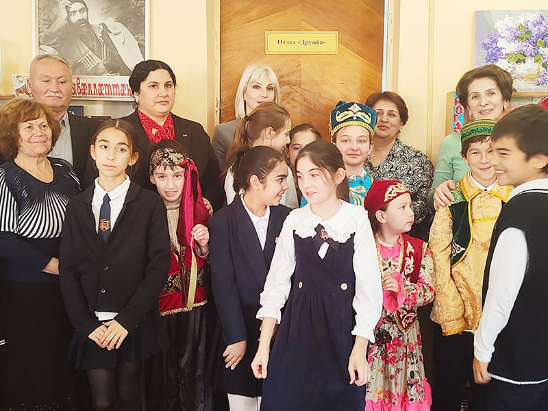 Ансамбль Дома дружбы «Цветы Алании» (руководитель – В. Войнова) исполнил азербайджанский, аварский и узбекский танцы. Ребята из ансамбля «Эребуни» (П. Демерчян) – армянский, а юный читатель Артем Чебухчян подарил библиотеке книги-сказки на армянском языке.