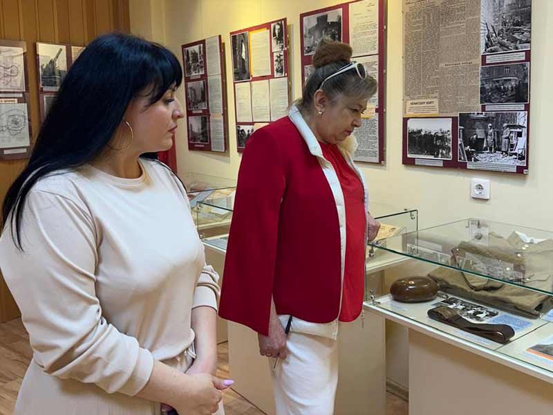 Руководитель Научно-методического совета архивных учреждений Северо-Кавказского федерального округа В. Е. Болотова и Е.Ш. Тебиева во время посещения Государственного архива Калининградской области.