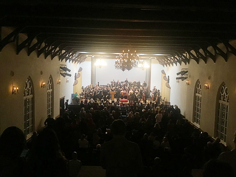 Открыло променад-концерт исполнение симфоническим оркестром жизнеутверждающей «Праздничной увертюры» с ее знаменитыми вступительными фанфарами. Продолжил вечер «Концерт для фортепиано с оркестром № 2», блистательным соло в котором отметилась яркая пианистка, лауреат многих международных конкурсов, солистка Санкт-Петербургского дома музыки, амбассадор проекта «Русская фортепианная школа» Елизавета Украинская. Всю удивительную палитру эмоций, заложенных в творчестве Д.Шостаковича, передали также вариация хулигана из балета «Барышня и хулиган», отражающая необузданный характер персонажа, трогательный романс из музыки к кинофильму «Овод» и, конечно же, знаменитый Вальс № 2 из «Джазовой сюиты», музыка которого задевает все струны души, чаруя своей притягательностью и мелодичностью.