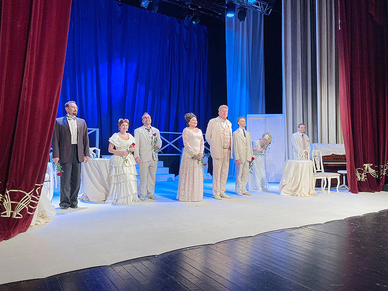 Первые два спектакля владикавказский зритель уже успел посмотреть. Постановка «О, женщины!» режиссера Алины Сорокиной по юмористическим рассказам Антона Павловича Чехова – просто наслаждение для публики. Красиво, элегантно, легко, воздушно, тонко, порой смешно – в этом весь Чехов, и актеры удивительно точно «попали» в настроение русского классика, который тоже появляется на сцене.