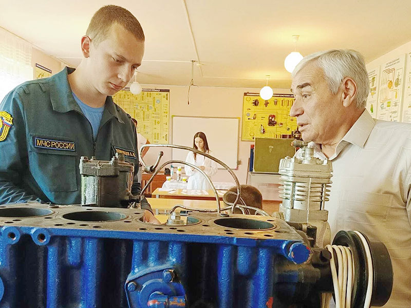Экзамен по эксплуатации сельхозмашин принимает заместитель директора ЭМК Геннадий Майсурадзе.