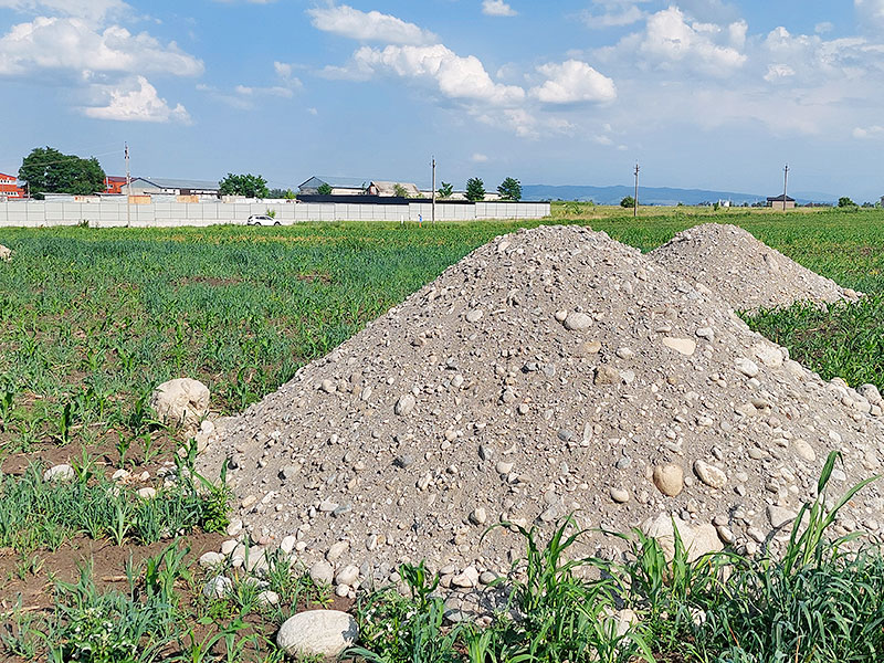 600 кв. м плодородного слоя оказались засыпаны гравийно-песчаной смесью, на которой складировались поддоны с кирпичом и бетонными блоками. Дополнительные три насыпи строительных материалов заняли еще 27 кв.м ценной пашни.