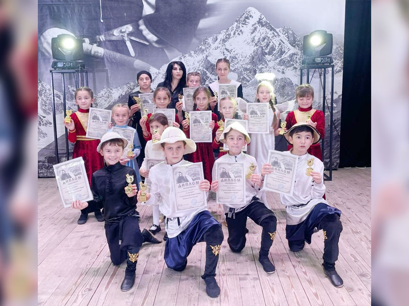 Заведующая филиалом Кировского районного Дома культуры – художественный руководитель Дома культуры селения Карджин Альбина ПЛИЕВА со своими воспитанниками