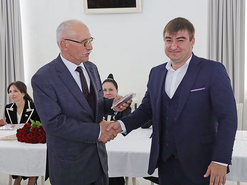 Батраз Гатциев провел церемонию награждения медалью «Почетный член ВОС», которым награждают за значительный вклад в развитие и деятельность общества, за особые заслуги перед ВОС, активное участие в жизни организации и помощь в решении ее уставных задач. Среди награжденных Председатель Правительства РСО–А Борис Джанаев, заместитель председателя Правительства РСО–А Альбина Плаева, министр труда и социального развития РСО–А Юрий Абаев, управляющий отделением Социального фонда России по РСО–А Аслан Мильдзихов, гендиректор АО «Кавдоломит» Руслан Агузаров, глава Алагирского городского поселения Хазбатр Фардзинов, директор ГАУЗ «Республиканский офтальмологический центр» Минздрава РСО–А Ирина Дзгоева, начальник отдела по социальным вопросам АМС Моздокского района Оксана Гасиева.