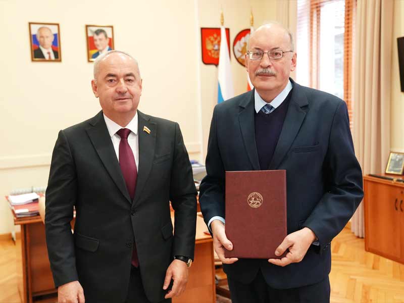 В завершение встречи Таймураз Тускаев выполнил приятную миссию – вручил Феликсу Кирееву Почетную грамоту Парламента РСО–А за многолетнюю плодотворную научно-исследовательскую деятельность и активное участие в общественной жизни республики.