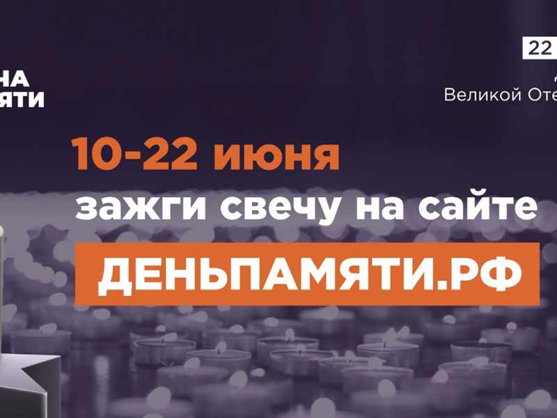 10 июня по всей России стартовала онлайн-акция «Свеча памяти». До 22 июня на сайте деньпамяти.рф каждый может зажечь свою виртуальную свечу и почтить память героев Великой Отечественной войны.