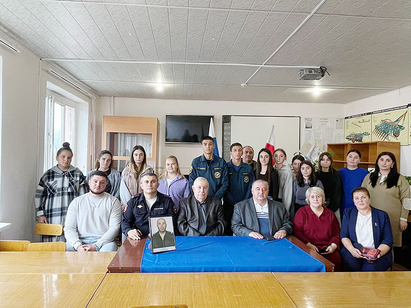 Ведущая мероприятия – преподаватель истории Мадина Маргиева – озвучила информацию о выпускниках колледжа – участниках СВО.