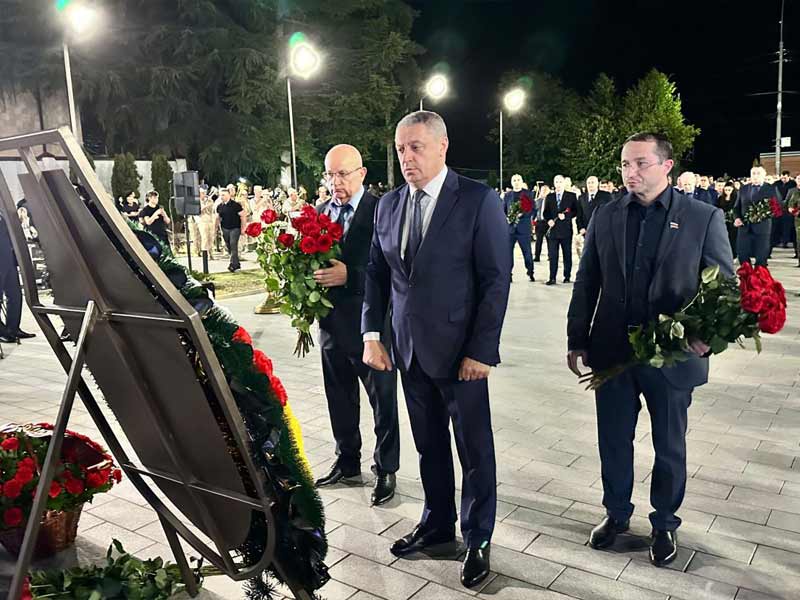 Вместе с Президентом Южной Осетии Аланом Гаглоевым, послом России в Южной Осетии Маратом Кулахметовым, представителями органов власти и жителями Цхинвала делегация Северной Осетии возложила цветы к монументу. Присутствующие также зажгли свечи и почтили память погибших минутой молчания.