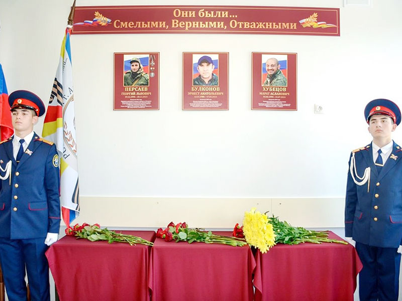 В МБОУ СОШ № 2 г. Алагира состоялось торжественное открытие мемориальной доски выпускникам школы, погибшим при исполнении воинского долга в ходе специальной военной операции Георгию Персаеву, Эрнесту Булконову и Марату Хубецову. Ученики школы подготовили трогательное выступление, в котором рассказали о жизни и подвиге каждого героя, а затем к мемориальной доске были возложены живые цветы.