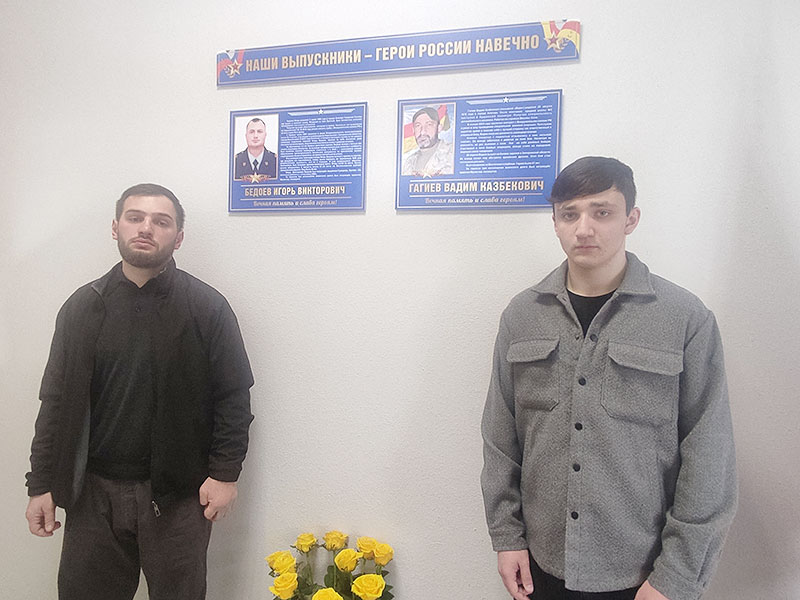 В СОШ №3 г. Алагира состоялось торжественное открытие мемориального стенда, посвященного выпускникам школы, участникам специальной военной операции Игорю Викторовичу БЕДОЕВУ и Вадиму Казбековичу ГАГИЕВУ.
